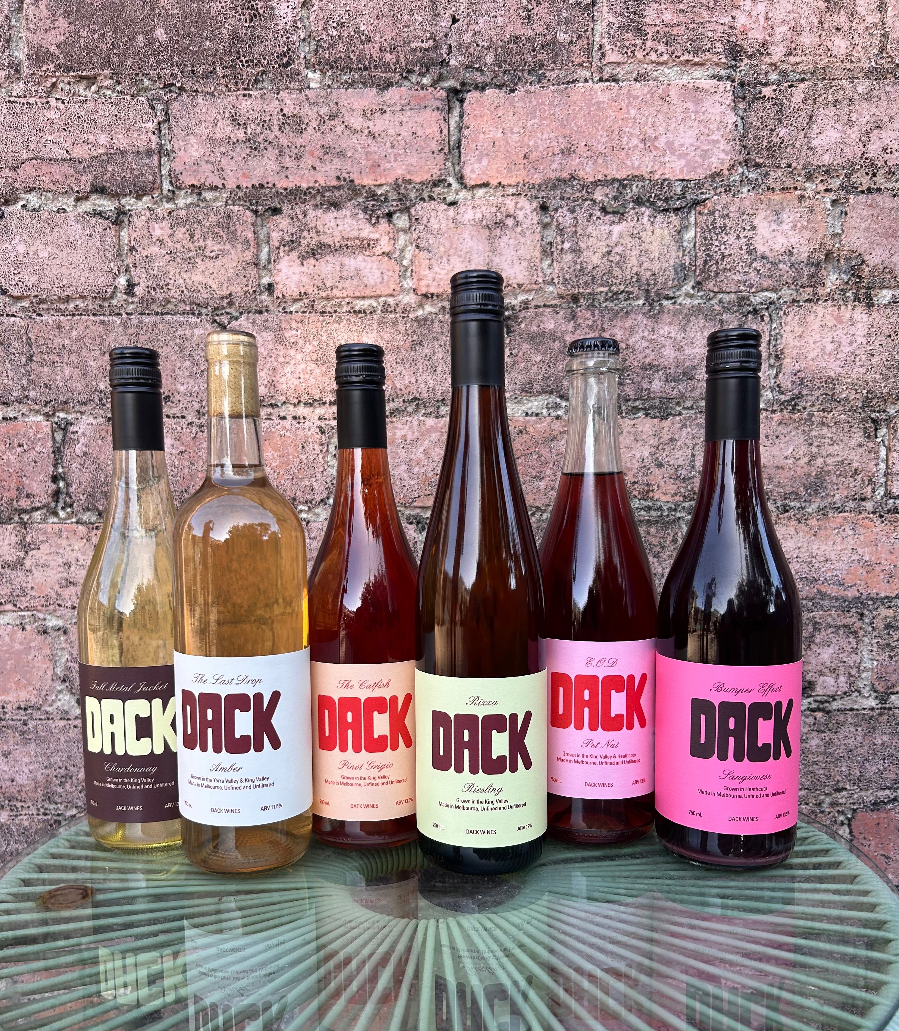 Welcome to Dack Wines. We’re a couple of Melbourne-based vignerons who believe great wine doesn’t need to be expensive or complicated. With this in mind, we make affordable, minimal intervention wines without oak, fining or filtration, with the intention of letting the grapes shine. For the first-timers, we hope you enjoy our vino, and for the returning customers, great to see you again!
